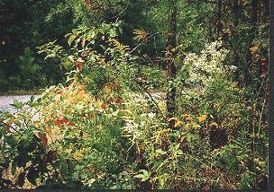 Autumn's yellows come from the flowering beech, birch, black gum, buckeye, hickory, mountain ash, and yellow poplars.Scarlet from the red maple tree, and Reds from dogwoods, maples, pin cherry, sourwood and sumac trees. Crimson from blackberry and blueberry bushes.